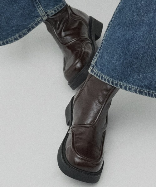 ■デザイン・ボリュームソールが存在感を放つサイドゴアブーツ。・スクエアトゥがモードな印象を引き立てるデザイン。・ステッチ部分を立体的に仕上げ、程よいアクセントと奥行きをプラスしています。・フェイクレザーながらもリアルレザーのような上品な質感。・厚底ながら、軽量で歩きやすく、サイドのゴムで脱ぎ履きしやすいため、ストレスフリー。・カジュアルからドレススタイルまで幅広く活躍します。■素材※カラーによって素材が異なります。BLK- 柔らかいスムースレザー調のフェイクレザーを使用。WIN- 自然な絞感のあるエナメル素材を使用。------------------------・透け感 なし・裏地 なし・伸縮性 あり------------------------【PUBLIC TOKYO】FROM JAPAN TO THE WORLD , ALL MADE IN JAPAN“THE TOKYO CASUAL”日本の伝統的な技術をベースに、 東京の研ぎ澄まされた感性で創り上げる。 新たな、TOKYO CASUAL BRAND。一つひとつの生活の瞬間を、美しく彩るベーシックアイテム。 純度の高いジャパンクオリティーが紡ぐ、機能性と着心地。すべての日常に、優しく寄り添う。 ALL MADE IN JAPAN この価値は、真似できない。さぁ。TOKYOのスタンダードスタイルを。▼商品のお気に入り登録お気に入り登録(♡)で、あなた限定のセール/値下げなどのお得な情報や、再入荷、在庫1点などの在庫状況をお知らせします。▼ブランドのお気に入り登録新作商品の再入荷、セール、クーポン配布などのお得な情報を受け取る事ができます。秋服/冬服/秋冬物/秋冬服/25AW/オフィスカジュアル/ビジネス/カジュアル/コート/アウター/ラギッドソール