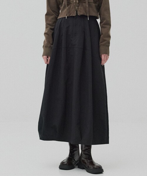 ■デザイン・切替ラインで立体感を出し、ゆるやかなフォルムが美しいスカートです。・ウエストを細く強調し、すっきりと見せられるのがスタイルアップのポイント。・綺麗めになり過ぎないステッチワークで、ニットと合せた時に程良い抜け感を演出します。・後のタックは座った時につぶれるのが気にならないような仕様になっています。■素材フォルムをきれいに出す程良いハリ感とマットな表情が着回しやすい綿ナイロンのダブルクロス素材。ニットが活躍する季節にほっこりせず、コーディネートできる生地。------------------------・透け感 なし・裏地 あり・伸縮性 なし------------------------【PUBLIC TOKYO】FROM JAPAN TO THE WORLD , ALL MADE IN JAPAN“THE TOKYO CASUAL”日本の伝統的な技術をベースに、 東京の研ぎ澄まされた感性で創り上げる。 新たな、TOKYO CASUAL BRAND。一つひとつの生活の瞬間を、美しく彩るベーシックアイテム。 純度の高いジャパンクオリティーが紡ぐ、機能性と着心地。すべての日常に、優しく寄り添う。 ALL MADE IN JAPAN この価値は、真似できない。さぁ。TOKYOのスタンダードスタイルを。--------------------------------------------お手入れ方法/手洗い可能--------------------------------------------▼商品のお気に入り登録お気に入り登録(♡)で、あなた限定のセール/値下げなどのお得な情報や、再入荷、在庫1点などの在庫状況をお知らせします。▼ブランドのお気に入り登録新作商品の再入荷、セール、クーポン配布などのお得な情報を受け取る事ができます。秋服/冬服/秋冬物/秋冬服/25AW/オフィスカジュアル/ビジネス/カジュアル/コート/アウター