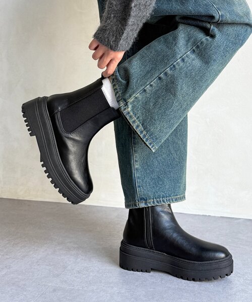 いつものコーデをアップデートしてくれる、トレンド感たっぷりの厚底ブーツ!サイドゴアと程よい丈感で、様々なスタイリングに合わせやすいのが魅力!カジュアルながらも足元に程よい重厚感をプラスして、こなれた印象に◎一足持っておくと、デイリーユースで活躍すること間違いなしのアイテムです。【POINT】・スタイルアップ効果のある厚底ソール・着脱しやすいサイドゴアデザイン【STYLING】・古着ライクなデニムにざっくりニットを合わせた、カジュアルスタイル。・ワンピースやスカートに合わせたMIXスタイルで、甘辛コーデを楽しんで。【KEYWORD】冬服※生産の都合上、お届け時期が前後する場合がございます。ご注文いただいた予約商品のお届け時期の確認は、注文履歴ページより行えます。※お色物は色移りする可能性がございます。着用、お取り扱いは商品についておりますアテンションタグを必ずご確認ください。※商品画像はサンプル品を使用しているため、実際の商品と仕様、加工、サイズが若干異なる場合がございます。また、可能な限り実物に近いカラーにて掲載していますが、使用しているパソコンのモニター設定や、携帯電話のメーカー・機種により実際のカラーと異なって見える場合がございます。予めご了承ください。