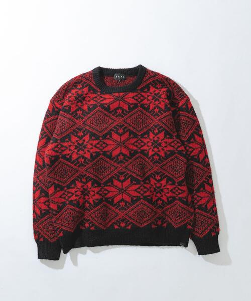 冬の定番ノルディック柄をEKALオリジナルで表現 オリジナルの雪柄を全体に用いたクルーネックデザインのニットプルオーバー。 ゆったりとしたリラックス感のあるサイジング。毛足のある糸を用いることで奥行きのある柄の表現をし、大人っぽい印象に仕上げています。 カラーは黒とブラウンの組み合わせと黒と赤の組み合わせで作成。秋冬ならではの温かみのある二色展開でご用意いたしました。デニムやスラックスとの相性の良さはもちろん、テック系のパンツにもはずしのアイテムとしてもコーディネートしていただけます.【モデル:179cm Lサイズ着用】【2025 Autumn/Winter】【25AW】※この商品は、素材の特性上、着用の際ピリング(毛玉)が発生する場合があります。ピリングは引っ張って取ろうとせず、小さなハサミなどで丁寧に取り除いて下さい。※その他お取り扱いに関しましては、商品に付属のアテンションタグをご覧ください。総重量 : 約720g※商品画像は、光の当たり具合やパソコンなどの閲覧環境により、実際の色味と異なって見える場合がございます。予めご了承ください。※商品の色味の目安は、商品単体の画像をご参照ください。▼お気に入り登録のおすすめ▼お気に入り登録された商品は、マイページにて現在の価格情報や在庫状況の確認が可能です。お買い物リストの管理にぜひご利用ください。素材感透け感 : なし伸縮性 : あり裏地 : なし光沢 : なしポケット : なしLM