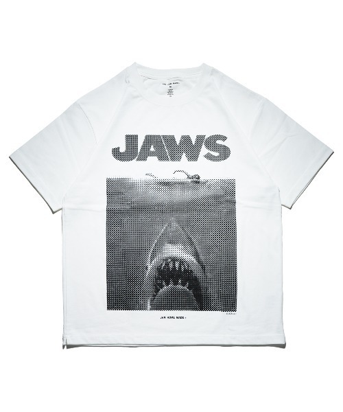 映画『ジョーズ』。不朽の名作とのカプセルコレクション。海洋パニックサスペンス映画の金字塔であり、不朽の名作として名を遺す『JAWS(ジョーズ)』。 映画のポスターアートは人々に大きなインパクトを与え、映画の期待感を大いに煽るものでした。 公開50年を経た今も、色褪せぬポスターは水中に潜むサメの恐怖を描いた極シンプルな背景。本コレクションは、作品とポスターアートに最大限の敬意を払い、極シンプルさを際立たせ商品化しました。 ポスターアートのTシャツはハーフトーンドットで表現しました。モノクロームプリントしクラック加工したグラフィックで、ボディは着心地にもこだわり、ポリエステルのシワになりにくさ、乾きやすさと、綿のぬくもりと通気性・吸水性の良さ、静電気の起こりにくさなど、いいとこ取りした万能生地を使用したジャムホームメイドのオリジナルボディ。程よくゆとりを持たせたシルエットで、気負わずラフに着用していただけます。メンズ(男性)、レディース(女性)性別を問わずジェンダーレスでお楽しみいただけます。クリスマス、バレンタインデー、ホワイトデー、誕生日、記念日などプレゼントやギフトにもおすすめです。トレンドに敏感な10代や20代だけでなく、大人ファッションを楽しむ30代や40代の幅広い年齢層にご利用いただいております。《 お知らせ 》▼商品のお気に入り登録お気に入りアイテムの値下げ(プライスダウン)・再入荷・在庫1点などの通知を受け取ることができます。▼ブランドのお気に入り登録新入荷(新着)や再入荷(再販)、タイムセール(あなただけのタイムセール)、セール、クーポン配布、メルマガなどお得な情報(安いタイミング)を受け取ることができます。