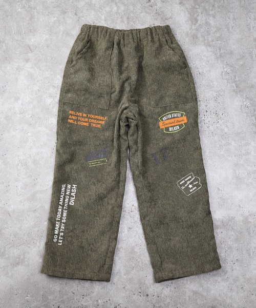ゆとりのあるストレートシルエットで、動きやすさも◎。秋冬のコーデに合わせやすい落ち着いたカラーが着回しやすくて◎左右に複数のプリントがアクセントになり、ポップでカジュアルな雰囲気を演出☆1枚でおしゃれ見えするデザインです😊ウエストは総ゴム仕様で着替えも簡単♪サイドにポケットもあって実用性も◎。【おすすめのコーディネート】ロゴ入りトレーナーやパーカーと合わせて、元気なカジュアルスタイルに。ニットやダウンベストを合わせると、より季節感のあるコーデに仕上がります。通園・通学から休日のお出かけまで、幅広く活躍するアイテムです。スニーカーとも相性がよく、足元までこだわったスタイルに仕上がります。*ウエストゴム取替口がございます。*DILのベビーサイズ商品は、全てホルマリン含有率の検査を通っておりますのでご安心下さい。【DILASH ディラッシュ】こだわりの素材にトレンドをきかせた、お気に入りのデイリーカジュアルブランド。明るく元気で楽しい毎日を演出する、そんなコーディネートを提案します。