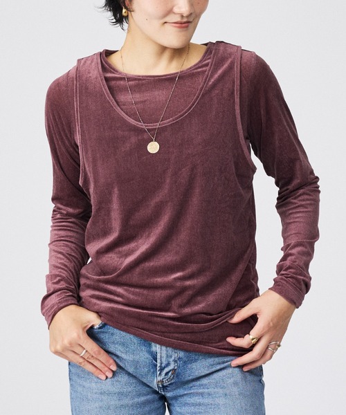 上品なレイヤードベルベットトップスタンクトップとカットソーの2枚セット。上品なきらめきあるベルベットがいつものコーデをエレガントにみせてくれます。お出かけやお呼ばれなど万能に活躍すること間違いなしの逸品です。パンツスタイルもスカートスタイルにも似合うアイテムです。【注意事項】※商品画像は、光の当たり具合やパソコンなどの閲覧環境により、実際の色味と異なって見える場合がございます。あらかじめご了承ください。※画像の商品はサンプルです。実際の商品と仕様、加工が若干異なる場合があります。メーカー品番:SBW-25043KN【Keena/キーナ】ベロア素材を主役にデイリーとラグジュアリーの両立させるVELVETに特化したブランド。光の加減で変化する表面の動きの美しさキラキラしてしっとりとした手触り、奥ゆかしく神秘的な光沢のVELVET。一切の無駄をそぎ落としながらも、身体に馴染むシルエットを追求。すべてのアイテムは、自社の一貫工場にて熟練の職人が一つひとつ丁寧に縫製しています。「素材の力を最大限に引き出す」という哲学のもと、コンフォートで上質な一着をお届けします。【商品のお気に入り登録】完売カラーの再入荷通知や、ラスト1点の通知、プライスダウンしたセール通知も受け取ることができます。【ブランドのお気に入り登録】新作や再入荷等、いち早くブランドのお得な情報を受け取ることができます。