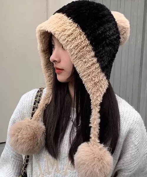 【EIZZ/アイズ】もこもこポンポン イヤーフラップ フェイクファー キャップ \ 視線を集めるキュートな冬の主役/ ふわふわとした肌触りが魅力のフェイクファーを使用した、愛らしさ満点のイヤーフラップキャップです。 たっぷりのボリューム感と、耳当ての先端に施された大きなポンポンが、周りの視線を集めるデザイン。 冬の寒空の下でも気分が上がるような、キュートでガーリーな雰囲気を演出します。 特にバイカラーのデザインが、顔周りに立体感と華やかさを与え、写真映えも抜群です。 ■ 極上の暖かさで耳までしっかりガード 見た目の可愛さだけでなく、防寒性にも優れています。 肉厚で暖かいフェイクファー素材が、冷たい外気をシャットアウト。 頭部全体はもちろん、特に冷えやすい耳元までをイヤーフラップがしっかりとカバーし、真冬の寒さから守ってくれます。 機能的な防寒帽でありながら、ファッション性の高いアイテムとしてデザインされているため、冬のお出かけやレジャーにも最適です。 ■ 小顔効果と自在なアレンジを楽しむ ボリュームのあるファー素材とイヤーフラップが、顔の輪郭をふんわりと包み込むことで、うれしい小顔効果も期待できます。 また、耳当て部分はそのまま垂らしてリラックス感を出したり、あごの下で紐を結んでしっかりと固定したりと、様々なアレンジが可能です。 結び方一つで表情が変わるため、その日の気分やアウターのデザインに合わせて楽しむことができる、冬のコーディネートの幅を広げるアイテムです。 【EIZZ/アイズ ZOZOTOWN お買い物ガイド】 ▼商品をお気に入り登録▼ 完売商品の再入荷やラスト1点の通知、セール開始時にお知らせ! ▼"EIZZ/アイズ"をお気に入りブランドに登録▼ 新商品や再入荷など、ブランド最新情報をいち早くお知らせ! 是非、ご活用いただきお買い物をお楽しみください◎ ■撮影はサンプル品を使用しており実物とは若干異なる場合もございますので、ご了承ください。 もこもこ帽子 ポンポン付き 耳当て付き ファーハット フェイクファー ボアキャップ トルーパーハット ロシア帽 イヤーフラップ 韓国ファッション ガーリー 冬小物 防寒帽子 小顔効果 バイカラー(※デザインによる) あったかい 暖かい 冬コーデ スキー スノボ 雪遊び