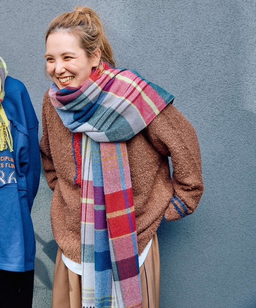 25メンバー4名でプロデュースのチェック柄ストール■素材特性柔らかくてチクチクしにくい滑らかい素材を使用。ボリュームが出すぎないので、サラッと使いやすいです◎■デザイン・マルチ(01)【てぃら】→カラーをたくさん入れてトラッド系のイメージに。全体的に落ち着いたトーンでまとめたので、お洋服選びにも困らないはず!・グレー(15)【erinko】→大人の顔を明るく優しく見せてくれるホワイト系の明るめカラーです。「合わせやすいのに、大きめのチェック柄でスタイリングのポイントにもちゃんとなる!」そんな色柄を選びました。・イエロー(60)【aimi】→ハッピーイエローとブラックの合わせで、メリハリのあるカラーを選びました!・ブルー(80)【あんちょん】→目を惹くブルーがメインのチェック柄に、さりげないピンクのラインが可愛らしさもプラスしてくれるデザインです。■おすすめスタイリング・マルチ(01)【てぃら】→ぐるぐる巻くのもかわいいけど、暗くなりがちな冬のアウタースタイルに垂らして使うのもGOOD!・グレー(15)【erinko】→冬のダークカラーコーデのポイントにも、ホワイトのワントーンで合わせるのもオススメです。・イエロー(60)【aimi】→ベーシックカラーのアウターにアクセントとして使うのがおすすめです。・ブルー(80)【あんちょん】→シンプルなコーディネートのワンポイントとして使うのがおすすめ!※サンプルにて撮影をしておりますので、実際の商品とは仕様や加工・サイズ等が若干異なる場合がございます。※屋外の光や照明の当たり具合で、実物と色味が異なって見える場合がございます。詳細画像の色味をご確認ください。 なお、商品の色や質感を出来るだけ忠実に再現するよう心掛けておりますが、パソコンなどの環境により、実物と若干異なる場合がございます。※写真を許可無くコピー・転用することは固くお断りします。