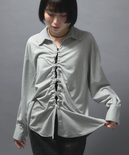 上品なスウェードタッチ素材で仕立てた、フロントドロストデザインのシャツ ドロストを絞ることで立体的なフォルムが生まれ、気分に合わせてシルエットをアレンジできる一枚です ・柔らかな質感と控えめな光沢が、スタイリングに優しいモード感をプラス ・タイトボトムでコンパクトに、ワイドパンツで抜け感を出して ・羽織りとしてもトップスとしても活躍し、季節の変わり目にも重宝します ・さりげないディテールで差をつけられる、洗練ムード漂う万能シャツです ・ドロスト部分を伸ばせばシンプルなスウェードシャツにも◎ スウェードタッチ/ドロストデザイン/立体シルエット ――――――――――――――― 透け感:なし 裏地:なし 生地の厚さ:普通 伸縮性:なし 光沢感:ややあり(上品なマットスウェード) ――――――――――――――― ◆《お気に入り登録》がオススメ◆ ・「商品のお気に入り登録」で再入荷通知や、ラストの通知、セール通知も受け取ることが出来ます。 ・「ブランドのお気に入り登録」で新商品や再入荷など、お得な情報を受け取ることが出来ます。 ※撮影時のライティング、ご覧になっているモニター・PC環境により、実際の商品と色味が異なって見える場合がございます。予めご了承をお願い致します。 ※モデル着用画像は実際の色と多少異なる場合がございますのでトルソー画像をご確認ください。 ※他のキャンペーンにより、期間中に価格が変動する場合があります。 ※セールは予告なく終了させていただく場合もあります。