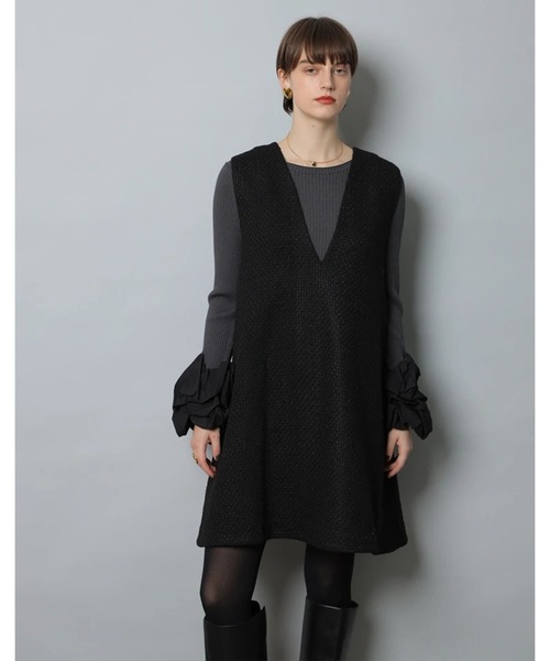 深めのVネックラインがすっきりとした印象を与えるジャンスカ。ほどよく広がるAラインシルエットで体型を選ばず、上品にもカジュアルにも着こなせます。タートルやシャツを重ねたレイヤードスタイルはもちろん、ブーツ合わせで季節感をプラスしても◎一枚でコーデが決まる万能アイテムです。【ご注意】※撮影照明の関係により、実際の商品と色味が異なって見える場合がございます。また、パソコン・スマートフォンなどの環境により、製品と画像のカラーが異なる場合もございます。予めご了承ください。※商品画像はサンプルのため、色味やサイズ等の仕様に変更がある場合がございますので、予めご了承ください。