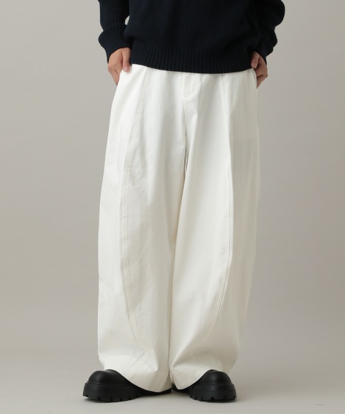 ーーーシルエットで魅せる。計算されたワイドテーパードーーー【POINT】ストリート感のあるボリュームたっぷりのワイドシルエット。 ただ太いだけではなく、裾にかけて絶妙にテーパードさせることで、ルーズになりすぎない計算され尽くしたバランスを実現。・履くだけで、こなれ感とトレンド感を一気に纏える、主役級の1本です。キレイめとラフさの「いいとこ取り」 フロントにはタックを施し、スラックス(トラウザー)のようなキレイめなディテールをプラス。 ストリートな雰囲気の中に、モードな上品さを共存。・キレイめとラフさのいいとこ取り。フロントにはタックを施し、スラックス(トラウザー)のようなキレイめなディテールをプラス。 ストリートな雰囲気の中に、モードな上品さを共存させました。【STYLING】高い着回し力で、コーディネートの幅を広げる。どんなトップスとも相性が良く、スタイリングのベースとして非常に優秀な一本。・スウェット、フーディー(パーカー)、ハーフジップアイテムと合わせる王道のスタイル。 ショート丈のダウンやブルゾンを合わせれば、バランスの取れたトレンド感のある着こなしが完成します。・オーバーサイズのニットやシャツをタックインし、シティボーイ風に着こなすのもおすすめです。 古着のスウェットやトラックジャケットと合わせても、洗練された現代的なスタイルに仕上がります。・ジェンダーレスな着こなしでユニセックスで着用可能。女性がオーバーサイズ気味に履きこなすスタイルもおすすめで、カップルでのシミラールックにも最適です。<LAND MUSEUM/ランドミュージアム>LANDMUSEUMは、ミニマルとストリート・ジェンダーの境界を越えて、自分のアイデンティティを表現できるスタイルを追求し細かいディティールとバランスの取れたシルエットで快適な着用感を提供します。・・・・・・・・・・・・・・・・・・・・・・透け感:透けない(ベージュで計測しています)伸縮性:あり生地の厚さ:普通裏地:なし・・・・・・・・・・・・・・・・・・・・・・▼取扱いSHOP:ALANDファッション、雑貨、コスメなどさまざまなブランドを取り扱う韓国発のストリートセレクトショップ。2020年秋、待望の日本上陸を遂げたALANDは、韓国の新進デザイナーとサブカルチャーを発掘し、その価値を最も魅力的な方法でマーケットに発信する唯一のライフスタイル型ストリートセレクトショップです。【お気に入り登録がオススメ】・商品のお気に入り登録「在庫残りわずか」「完売カラーの再入荷」「セール」の通知を一足早く受け取ることができます。気になった商品はまずお気に入り登録へ!・ブランドのお気に入り登録お気に入り登録したブランドの新作や再入荷等、ブランドのお得な情報を定期的に受け取る事が出来ます。※屋外の光や照明の当たり具合で、実際の商品の色味とカラー別画像の色味に違いが発生する場合がございます。 商品の色味はスタジオ撮影の詳細画像にてご確認ください。※サンプルにて撮影をしておりますので、実際の商品とは仕様や加工・サイズ等が若干異なる場合がございます。