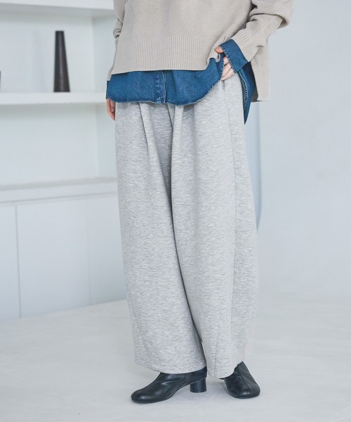トレンドのコクーンシルエットのパンツ。 カジュアルに見えるカットパンツもコクーンシルエットで綺麗見えする1枚に。 ウエストにはゴムを使用しているので着脱のしやすさもポイント。 【素材】 レーヨン混の滑らかな生地。 裏起毛の素材感であたたかく秋冬にもおすすめ。 【スタイリング】 合わせるトップスを選ばずスタイリングできます。 ボリュームのあるシルエットなのでコンパクトなトップスとの相性〇 合わせるだけで今年らしいスタイリングが完成します。
