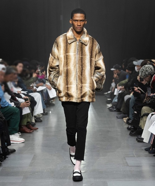 "艶を演出するファージャケット"ラグジュアリーで艶やかな質感が魅力の、大人のためのフェイクファージャケット。柔らかく肌触りの良いフェイクファーを使用し、包み込まれるような着心地と高い保温性を兼ね備えています。背面にはフェイクレザーで仕立てたオリジナルグラフィックのワッペンを刺繍。シンプルな中にMSMLらしい存在感を宿したデザインが際立ちます。ゆとりあるシルエットと滑らかな裏地仕様により、リラックスした着心地とエレガントな佇まいを両立。一枚羽織るだけでスタイルの主役となる、ラグジュアリーな空気を纏った一着です。■柔らかく艶のある高品質フェイクファー素材を使用■背面にフェイクレザー製オリジナルグラフィックワッペンを刺繍■ゆったりとした身幅とアームホール設計で快適な着用感■滑らかな裏地仕様でストレスのない着心地■保温性に優れた秋冬シーズン対応アウター■ユニセックス仕様・一枚で存在感を放つデザイン