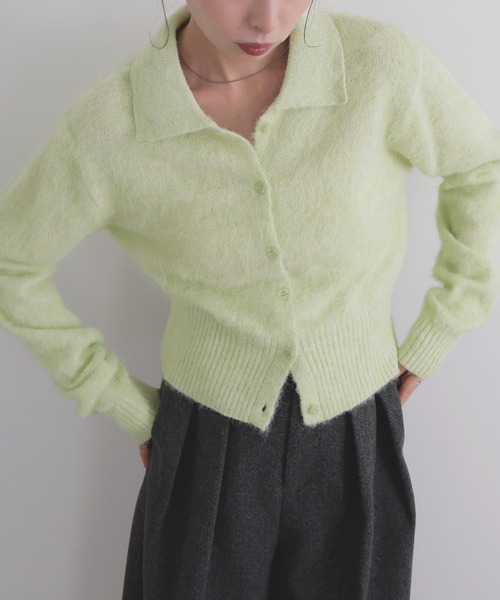 シーズンムードを高めるフェザーが魅力の襟付きカーディガン 少し毛足のある柔らかな風合いと起毛感が見た目にもあたたかみ感じられる一枚。 肌に触れてもチクチクしにくく、やさしく包み込まれるような着心地です◎ シンプルなデザインながらも、素材の表情で存在感を放つニットプルオーバーに仕上げました。 ややコンパクトめな丈感と、リブ切り替えの袖口とウエストが自然にスタイルアップを実現◎ 小ぶりなポロ襟とフロントボタンが上品なアクセントになり、 カーディガンとしても、ボタンを留めてトップス風にも着用可能です! ボタンを開けると抜け感が生まれ、デコルテをきれいに見せてくれるのも◎ 軽量で肌触りの良いシャギー生地を採用。 冬スタイルを華やかにアップデートしてくれるカラー展開で、春先まで着回せます◎ 今季ワードローブに加えたい、大人のシャギーニットカーディガンです。 ------------ 裏地 なし 透け感 アイボリー、ピンクややあり 伸縮性 あり 光沢 なし ポケット なし 洗濯方法 手洗い可 ------------ 【スタイリング】 ミニマルなデザインでどんなボトムとも合わせやすい優秀ニット。 リラクシーな大人カジュアルに決めたいときはカーゴパンツやイージーパンツ合わせが◎ 定番のデニムパンツやスウェットパンツ合わせもおすすめです。 スラックスやロングスカートなどと合わせるときれいめなスタイリングに◎ ミニスカートやショートパンツにロングブーツ合わせで一気にこなれたスタイルが完成。 レザー調スカートと合わせれば、モードな印象に。 ※お使いのモニター設定、お部屋の照明等により 実際の商品と色味が異なる場合がございます。 物撮り写真はできる限り実物の色に近づけるようにしておりますので、 色に関しては商品の物撮り写真をご参考ください。 ▼もっとお買い物を楽しんで頂く為に▼ 〈商品のお気に入り登録〉 お気に入りの登録をして頂きますと セールの通知・ラスト1点になった時の通知や、再入荷通知を受けることができます。 〈ブランドのお気に入り登録〉 新商品の発売や再入荷、タイムセールやクーポン発行のお知らせなど LIANがお届けするお得な情報を受け取ることができます。