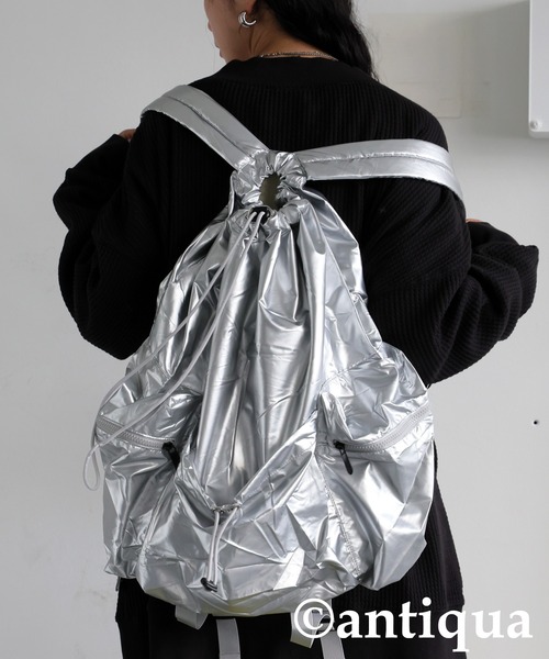 軽さと存在感を両立した次世代リュックが登場。 しっとりとした艶感のある合成皮革が、モードな着こなしに映えるデザインです。 開け口はドロスト仕様でスムーズな開閉が可能。 前面ポケットや内ポケットも豊富で整理整頓もラクに叶います。 肩にやさしいクッション入りストラップは長さ調節も自在で快適なフィット感を実現。 底部にはベルトが付属し、ヨガマットや三脚などアウトドアグッズも携帯可能な形状です。 通勤・通学・ショッピング・旅行など多用途に活躍する、大容量設計のリュックサックです。 ブラック(黒・くろ・Black)とシルバー(銀・ぎん・Silver)の2色展開で、コーデに輝きをプラスします。 【♡マークを押して、お気に入り登録を!】 『ラスト1点通知』、『再入荷通知』、『値下げ通知』など、お得な情報を受け取ることができます!! 気になったアイテムは今すぐ ”お気に入り登録” をお忘れなく★★