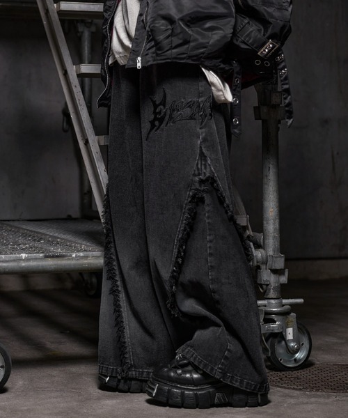 ■アイテム説明 裾に施したスプレー加工と大胆なフリンジが印象的なワイドデニム。 ほどよい厚みのあるデニム生地を使用し、しっかりとした質感ながらも動きに合わせて自然なドレープ感を楽しめます。 サイドにはERARのブランドロゴが大きく刺繍され、さり気なく存在感を発揮。 裾に向かってややフレアに広がったワイドシルエットもポイントです。 カラーは万能に使えるホワイトと、コーデにアクセントを与えるレッドの2色展開。 ユニセックスで着用でき、男女問わずトレンド感のあるコーディネートが楽しめます。 ■素材 ほどよい厚みのあるデニム生地を使用。 肌なじみが良く、ストレスなくオールシーズン活躍できます。 ■コーディネート 柄もののニットやヴィンテージライクなトップスなどと好相性。 存在感がありながらも、合わせるアイテムを選ばない万能なデザインで様々な場面で重宝すること間違いなし。 厚底スニーカーやブーツを合わせれば、パンツのワイドシルエットがさらに際立ちます。 ▼商品詳細 透け感:なし 裏地:なし 光沢:なし 伸縮性:なし ▼デニム製品のお手入れと注意点 取り扱いの際は、取り扱い表示をご確認の上、次の点に十分ご注意ください。 ・汗や摩擦により移染しやすいため、淡色の衣類や小物等に色移りする可能性がございます。 ・色落ちする恐れがありますので、他の物と一緒に洗わないでください。 ・洗濯する際は、洗濯ネットの使用や裏返しにすることで色落ちや摩擦によるダメージを軽減できます。 ・直射日光は色あせの原因になりますので、風通しの良い日陰で干してください。 ▼推奨サイズ S:~ 169cm M:170cm ~ 174cm L:175cm ~ 179cm XL:180cm ~ -モデル着用サイズ- 172cm / SIZE:L 靴底の高さ /ホワイト:7cm レッド:4cm ※商品画像は、光の当たり具合やパソコンなどの閲覧環境により、実際の色味と異なって見える場合がございます。予めご了承ください。 ■ブランド説明 『その時代に囚われず自我を貫く。』をコンセプトに他に無い癖のあるアイテムを展開 【お買い物をお楽しみいただく為に】 ▼商品のお気に入り登録完売カラーの再入荷通知や、ラスト1点の通知、セールの通知も受けることができます。 ▼ブランドのお気に入り登録新商品や再入荷等、いち早くブランドのお得な情報を受け取ることができます。