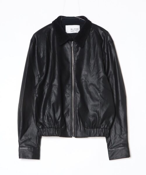 Back Embroideried Corduroy Collar Faux Leather Blouson / コーデュロイ襟バック刺繍フェイクレザーブルゾン