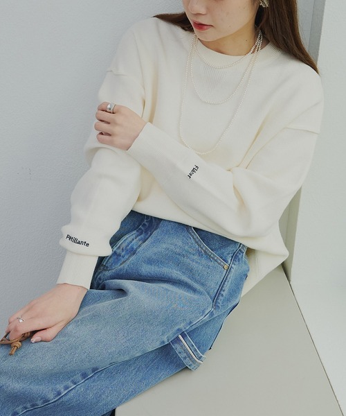 ◇ラフな着心地!スウェット感覚で着られるニット◇●商品のお気に入り登録クーポンやタイムセール、再入荷通知やラスト1点などお得な情報を受け取ることができます。ご登録をお忘れなく◎●デザインデザイン性がありながら気軽に着まわせるプルオーバー。ベーシックなクルーネックにヴィンテージライクなVガゼットデザインを施しカジュアルな印象に。首元・袖口・裾周りは太めのリブで仕上げて、キレイなシルエットをキープしながら、スウェットライクな雰囲気を演出。肩線に沿った縫い目をみせるアウトリンキリングが、立体的なポイントととなり、さり気なくアクセントを効かせています。ふとした瞬間に目に入る両袖口には、左右で異なるロゴを刺繍し気分を上げるこだわりの可愛いポイントです。程よいゆとりあるサイズ感とやや厚手の生地で身体のラインを拾わず、こなれ感のあるスタイリングを楽しめる1着です。●スタイリングスラックス合わせできちんと感を加えた大人カジュアルなお出かけコーディネートから、デニムパンツやニットパンツで気軽なワンマイルウェアまでお楽しみいただけます。ベロアや起毛素材のトップスをインナーに着たレイヤードスタイルは、さりげなく季節感を演出できます◎華奢なネックレス、ゴールドやシルバーの輝きあるピアス・イヤリングをつけて、装いに洗練さをプラスするのもオススメです。●素材さらりとした肌当たりの柔らかいニット生地。===============================洗濯方法:手洗い/ドライクリーニング/ウェットクリーニング/もみ洗いは避け、押し粗いをしてください。透け感:なし裏地:なし伸縮性:あり光沢感:なし生地の厚さ:やや厚手【スタッフコメント】年齢:20代前半/身長:153cm/普段着用サイズ:S~Mサイズ着用感:程よい厚さのニット生地ながら、チクチクすることのないドライタッチな肌当たりで快適な着心地。腰回りほどの着丈ですが裾のリブがしっかりとあるので、すっきりとした印象で着用できました。===============================※着用、お取り扱いの際は、商品についている品質表示とアテンションタグを必ずご確認下さい。※撮影場所やお使いのモニター環境により若干お色味が異なる場合がございます。特にロケの撮影では明るく見える傾向にございます。 ※予約商品はサンプルで撮影をしております。若干の仕様が変更になる場合がございますので予めご了承の上ご注文くださいますようお願いいたします。【予約品の入荷時期について】店舗入荷時期と予約商品のお届け時期が異なる場合がございますので、予めご了承ください