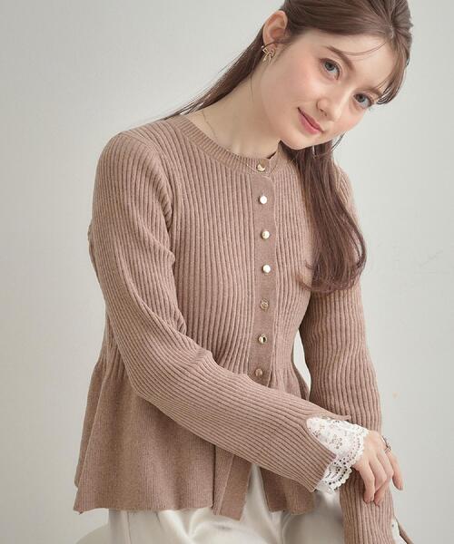 ペプラムシルエットが可愛いニットカーディガンです~POINT~1枚でも、羽織としても着ていただけます。袖口にレースを叩きつけており、レイヤードしているように見えます。【素材】短毛モール糸のニットです。ベロアのようにも見えて今年らしくて可愛いです。※製品寸法は平置きのスペックとなっております。こちらの商品は伸縮性があります。※照明の関係により、実際よりも色味が違って見える場合があります。また、パソコン・スマートフォンなどの環境により、若干製品と画像のカラーが異なる場合もございます。【スタッフコメント】shino(164 )ニットの素材感と袖口のレースデザインが可愛く、冬のお出かけにぴったりの一枚です〇ペプラムデザインになっているので、着映えるのはもちろん、腰回りをさりげなく体型カバーをしてくれるところも嬉しいポイントです!【25AW NEW ARRIVAL】【25AW NEW COLLECTION】モデル情報:身長159cm B75 W56 H81 着用サイズ:38(M)店舗へのお問い合わせ商品番号:508-34018●製品寸法:36(S):着丈55cm B73cm 袖丈61cm 肩幅29cm38(M):着丈56cm B76cm 袖丈62cm 肩幅30cm42(LL):着丈57cm B79cm 袖丈63cm 肩幅31cm備考: