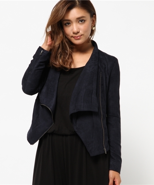 大きめの衿がポイントのショートジャケット。羽織るだけで秋感が出せておすすめ☆