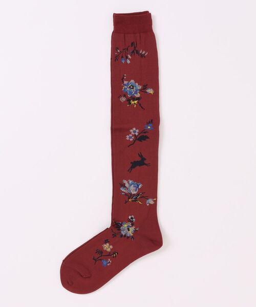 お花とウサギ柄をライン上に配置したハイソックス。 SUPER HAKKAで久しぶりに登場するアイテムです。 ワンピースやスカートの足元から覗かせたり、タイツ代わりにパンツの下に履いたり、冬のコーディネートをレベルアップさせてくれます。 合わせやすいブラックと、柔らかいお色目のレッドとグリーンの展開です。 店舗へお問い合わせの際は、下記の品番をお申し付け下さい。 [品番:34060154]