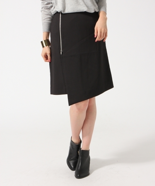 フロントデザインがポイント♪ フロントのアシンメトリディティールとジップデザインが特徴のスカート。ふくらみ感とハリ感を持ち合わせた素材を使用しているので、上品な印象の1枚です。メタルジップでアクセントをつけておりシンプルながら存在感のあるアイテムなのでシンプルトップスとのスタイリングがおすすめです。店舗へのお問い合わせは下記の商品名と品番をお伝えください。商品名:ZIPアシメSK品番 :567975