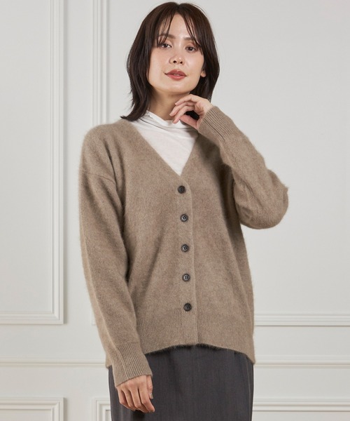 ■デザイン 柔らかい毛足がポイントで一枚でもコーディネートのアクセントになるVネックカーディガン。ゆったりとしたサイズ感と、ほどよいVネックの開きが抜け感を演出してくれます。上質な素材感を際立たせる為、前立て部分を見返し使いにして出来るだけシンプルなデザインにしました。袖口はリブ使いにしているので、袖を捲し上げてもしっかりホールドできます。サラッと羽織れるので、メインアイテムとしてコーディネートを楽しんでいただけるアイテムです。 ■素材 非常に細く柔らかでフワフワとした質感の高級原料ラクーンを贅沢にブレンドしたファーニット素材。繊維の間に空気を含むため保温性に優れ、適度な光沢感と長い毛足が特徴で、その繊細な毛足、ソフトなとタッチと軽やかな着心地は他の獣毛とは違う魅力があります。ボリューム感があり耐久性に優れているため、長く着用をお楽しみいただけます。 ■サンプル撮影商品 画像の商品はサンプルです。実際の商品とはサイズや色味、素材、デザイン等の仕様が若干変更になる場合がございます。
