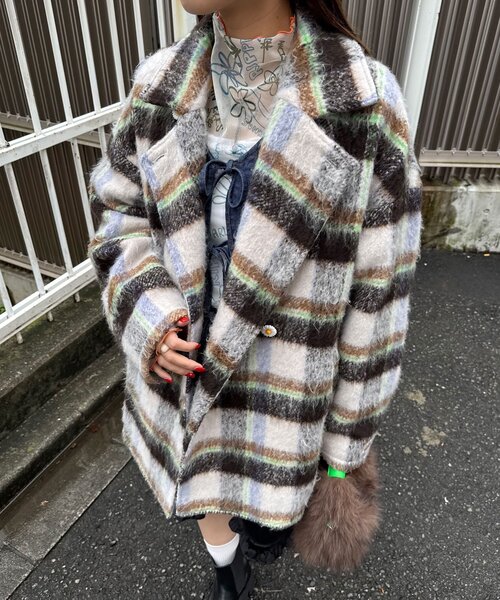 一癖が可愛いシャギーオーバーコート ▼ポイント マーガレットボタンとチェック柄がポイントのシャギーオーバーコート。 ふんわり柔らかなシャギー素材で、見た目も着心地も暖かく、ゆったりしたオーバーシルエットが今っぽい一枚。 カジュアルからきれいめまで、幅広いコーデに取り入れやすいアイテムです。 ▼スタイリング シンプルなニットやスウェットに羽織るだけで、ざっくり可愛いコーデに。 デニムやスニーカーと合わせて、カジュアルでラフな着こなしも楽しめます。 --------------------------------------------------- 透け感:なし 伸縮性:なし 裏地:あり 光沢:なし --------------------------------------------------- 家庭洗濯:不可 タンブル乾燥:不可 アイロン:不可 クリーニング:ドライクリーニング不可、非常に弱い処理によるウェットクリーニング可 --------------------------------------------------- 【HELLO.SANFRANCISCO/ハローサンフランシスコ】 西海岸を代表するサンフランシスコ。年中暖かく、穏やかでフレンドリーな都市。少し懐かしさを感じる柄やアイテムを今の女の子に向けて提案。メンズライクな素材を女の子が着るシルエットに落とし込んだアイテムなどトレンドに敏感でいろんな気分に合わせて、服を選ぶ女の子のためのシリーズ。 --------------------------------------------------- ※着用、お取り扱いの際は、商品についている品質表示とアテンションタグを必ずご確認下さい。 ※画像の商品はサンプルです。実際の商品と仕様、加工、サイズが若干異なる場合がございます。 ※可能な限り実物に近いカラーにて掲載していますが、撮影環境やモニター環境などにより製品と画像のカラーがやや異なって見える場合もございます。予めご了承ください。 【お買いものをよりお楽しみいただく為に!!】 ▼商品のお気に入り登録(ハートマークをクリック) お気に入りアイテムの完売カラーの再入荷通知や、ラスト1点の通知、セールの通知も受け取ることができます。 ▼ブランドのお気に入り登録 新商品や再入荷、クーポン配布などのお得な情報を受け取ることができます。