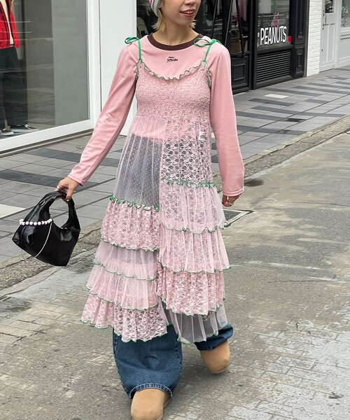 レースで華やぐ2WAYティアード ▼ポイント レースと異素材ブロッキングが可愛いティアードデザインの2WAYアイテム。 ウエストで履けばフレアスカート風に、肩紐を使えばキャミワンピとしても楽しめます。 ふんわり揺れるシルエットとレースの切り替えが華やかさをプラスし、ラフにもガーリーにもコーディネートできる一枚です。 ▼スタイリング Tシャツやタートルと合わせてスカートとしてカジュアルに。 肩紐を使ってキャミワンピ風にすれば、フェミニンで今っぽいレイヤードコーデも楽しめます。 --------------------------------------------------- 透け感:あり 伸縮性:あり 裏地:なし 光沢:なし --------------------------------------------------- 家庭洗濯:30℃限度/洗濯機[非常に弱い] タンブル乾燥:不可 アイロン:不可 クリーニング:ドライクリーニング不可、非常に弱い処理によるウェットクリーニング可 --------------------------------------------------- 【HELLO.SANFRANCISCO/ハローサンフランシスコ】 西海岸を代表するサンフランシスコ。年中暖かく、穏やかでフレンドリーな都市。少し懐かしさを感じる柄やアイテムを今の女の子に向けて提案。メンズライクな素材を女の子が着るシルエットに落とし込んだアイテムなどトレンドに敏感でいろんな気分に合わせて、服を選ぶ女の子のためのシリーズ。 --------------------------------------------------- ※着用、お取り扱いの際は、商品についている品質表示とアテンションタグを必ずご確認下さい。 ※画像の商品はサンプルです。実際の商品と仕様、加工、サイズが若干異なる場合がございます。 ※可能な限り実物に近いカラーにて掲載していますが、撮影環境やモニター環境などにより製品と画像のカラーがやや異なって見える場合もございます。予めご了承ください。 【お買いものをよりお楽しみいただく為に!!】 ▼商品のお気に入り登録(ハートマークをクリック) お気に入りアイテムの完売カラーの再入荷通知や、ラスト1点の通知、セールの通知も受け取ることができます。 ▼ブランドのお気に入り登録 新商品や再入荷、クーポン配布などのお得な情報を受け取ることができます。