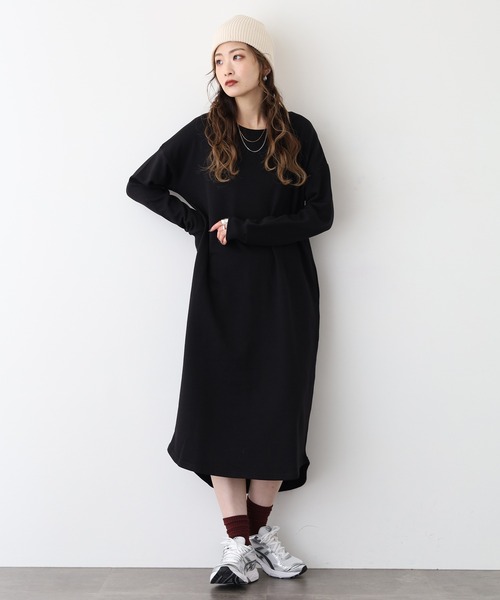 NARNAD ■point 1.ビッグシルエットでゆったりラクチンなスタイル。2.ポケット付きでカジュアルやスポーティースタイルにピッタリ。 3.伸縮もあるので長めの丈でも動きやすく、快適な着心地。 ■fabric 軽くて丈夫、肌触りも柔らかく、ストレッチ性もあり快適。 ■silhouette 全体にゆとりのあるビッグシルエットで、体のラインを拾わずリラックス感のある着心地。 マキシ丈が縦のラインを強調し、スタイルアップ効果も。 袖は長めで手元まで包み込み、ポケット付きでカジュアルな印象に。 ■coordinate マキシ丈ワンピースには、インナーにハイネックのカットソーを重ねて首元に奥行きを出し、アウターにはショート丈の中綿ブルゾンを羽織ってバランスよく仕上げます。 足元は厚底のスニーカーでスポーティーにまとめ、バッグはナイロン素材のミニショルダーでアクティブな印象に。 ヘアはラフにまとめてキャップをプラスすれば、抜け感のあるカジュアルスタイルが完成。 手元にはリブニットのグローブを添えて季節感を演出すると、冬の街歩きにもぴったりなスタイリングに。 『OKシーン』 通勤・通学・街歩き・カフェ・旅行・帰省・デート・女子会・ショッピング・美術館・観劇・図書館・オフィス・週末・ランチ・ディナー・初詣・冬フェス・撮影・ギフト 【お買いものをお楽しみいただく為の方法】 ★商品のお気に入り登録★ ・完売カラーの再入荷通知や、ラスト1点の通知、セールの通知も受け取ることができます。 ★ブランドのお気に入り登録★ ・新商品や再入荷など、いち早くブランドのお得な情報を受け取ることができます! レディース/女性用/長袖ワンピース/マキシ丈 ワンピース/春服/秋服/ビッグシルエット/ゆったり/ポケット付き/カジュアル/スポーティ/リラックス/ストレッチ/ロングワンピース/ゆるシルエット/着心地快適/大人カジュアル/ルームウェア/部屋着/エフォートレス/リブデザイン