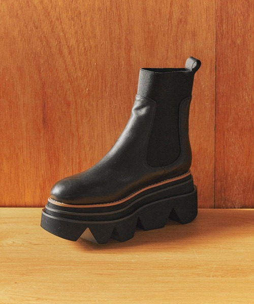 【PARADIS COULEUR/ パラディクルール】 インパクトのあるボリュームソールが特徴的なサイドゴアブーツが「パラディクルール」から登場しました。 9cmの高さがあるボリュームソールはEVA素材を使用している為、見た目より軽量で足への負担はありません。 ボリューム感のあるフォルムでワイドパンツと相性の良いアイテムです。 『PARADIS COULEUR/ パラディクルール』 大人の女性が楽しめる、可愛さとカッコよさを兼ね備えたカジュアルシューズブランド「PARADIS COULEUR」。 程よくトレンドを取り入れたベーシックなデザインは、日常になじみながらも洗練された印象を演出し、美しい足元を引き立てます。 <素材詳細> 【ブラック,ダークブラウン】甲;羊革 .ソール; 合成樹脂 【ブラック系その他】甲;牛革 .ソール; 合成樹脂 ※生産過程に生じるキズが多少ある場合がございます。また素材の特性上、若干の色ムラ、擦れが見られる場合がございますが、こちらは素材の特性となります。予めご了承下さい。 ※輸送中に多少箱が破損する場合がございます。 ※サイズ換算(表記)はあくまで目安となります。