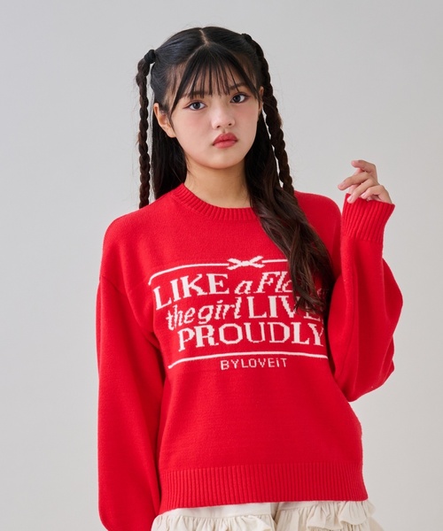 大胆にあしらったロゴデザインが印象的なニットです。シンプルな配色とリボンモチーフで上品な雰囲気を演出。ルーズなシルエットのため、カジュアルな着こなしにマッチします。合わせるボトムのテイストを選ばずに着回しできる一着です。【透け感】透けない【生地の厚さ】普通【伸縮性】あり【裏地】なし【ポケット】なし【アジャスター】なし