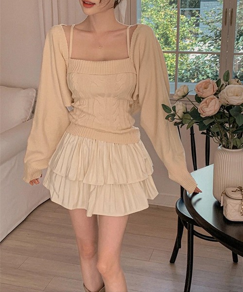 ケープス編みのもちもちとした風合いのニットアンサンブル。 手触りが良くあたたかみがあり、優しい着心地が魅力的。 ボレロは丸みフォルムがガーリーな印象を与えつつ、気軽に羽織りやすいデザインでデイリー使いにおすすめ。 それぞれ単品使いすることもできるので、フレキシブルな着回しが楽しめるアイテム。 ♥【Jasmine Grandiflorum】 公式instagram>>@jasmine_grandiflorum_official 大人のsexy&cuteブランド♡ 世の中の女性に女性としての魅力を最大限に発揮できるそんなファッションを提供していきます。 ▼【お気に入り登録】をしましょう!最新のお得情報がいっぱい! ・商品のお気に入り登録完売カラーの再入荷通知や、ラスト1点の通知、セールの通知も受け取ることができます! ・ブランドのお気に入り登録 新商品や再入荷、クーポン配布などいち早くブランドのお得な情報を受け取ることができます♪