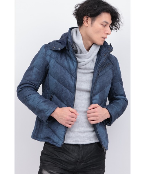 [DESIGN]T/Cスエード×ヘアライン柄ダウンブルゾン。フェイクスエード生地にヘアライン(毛流れ柄)プリントを施し、味のある表情を出した素材です。ライダースデザインを踏襲しつつもシャープな印象になるように繊細なステッチワークで仕上げたダウンデザイン。フードは着脱可能で着用スタイルで様々な着こなしが楽しめるい一着です。[TEXTILE]ポリエステル×コットンのフェイクスェード地に、ヘアライン(毛足柄)をプリントした素材。スェードライクな滑り感と、しっとりとした表情でブランド定番の素材です。