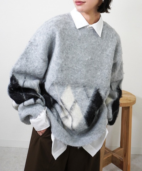 ■デザインふんわりと起毛した表面感が魅力のアーガイルニット。毛足の長い糸をゆるく編み上げ、柔らかく包み込むようなボリューム感に仕上げました。ヴィンテージ感のあるアーガイル柄を大きめに配置し、存在感がありながらもどこか優しい印象。ゆったりしたシルエットで、抜け感のあるリラックスムードを演出します。 ■スタイリング 1枚で主役になる存在感のあるニットは、シンプルなボトム合わせがおすすめ。襟ぐりや袖口からインナーを少しのぞかせたレイヤードも、こなれた印象をプラスしてくれます。アウターの中でも映える大柄アーガイルが、冬の着こなしをぐっと華やかにしてくれる1枚です。 ※照明の関係により、実際よりも色味が異なって見える場合があります。またパソコン・スマートフォンなどの使用端末の環境により、若干製品と画像のカラーが異なる場合もございます。 ※商品の色味は、商品アップ画像をご参照ください。 gossara(ゴサラ) ″今欲しい″ ″今着たい″ をコンセプトに可愛いと思うものセレクトし、 simpleでnaturalな可愛いitemが並びます◎ 大人カジュアルをメインに流行を取り入れ、レイヤードや色使いでワンランクupした、 トータルコーディネートをご提案◎ 【気になる商品はお気に入り登録をおすすめ】 ■商品のお気に入り登録 再入荷通知、セールなどの通知を受け取ることができます。 ■ブランドのお気に入り登録 新商品や再入荷など、ブランドのお得情報をいち早く受け取ることができます。