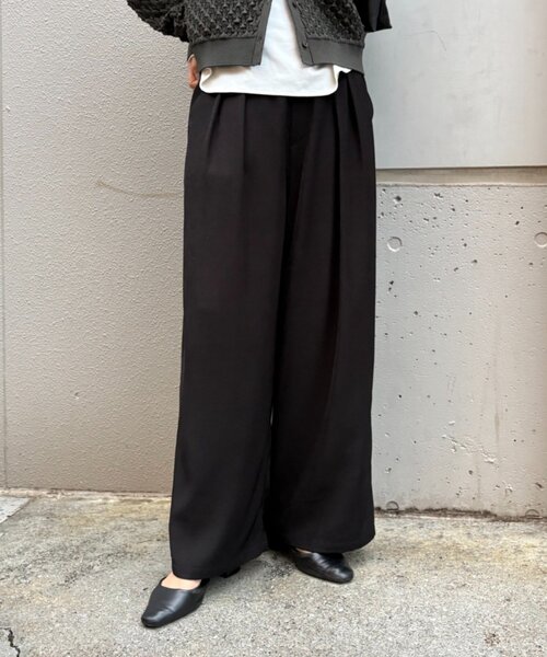 ■2025 Autumn & Winter Item■マイナス3kg見えで話題の「2タックワイドパンツ」があったか新素材にアップデートして登場!-商品ポイント-・フロントに施した2タックが、腰回りをスッキリさせ、「マイナス3㎏見え」を実現。・裏地付きで保温性を実現◎程よい生地の厚みで冬のあったかパンツとして重宝する一本。・ウエストタックですっきり見えはもちろん、バックゴム仕様でイージーな履き心地。・脚のラインを拾わないすとんと落ちる美シルエットで、体型カバーも叶います。・きれいめカジュアルめなコーディネートにはまるので、オフィスカジュアルにもおすすめ◎ーマテリアルー■透け感:なし■裏地:あり■伸縮性:ウエスト部分あり■光沢感:なしー洗濯方法ー手洗い可能ー注意事項ー商品の画像はできるだけ実物に近い色味で掲載しておりますが、ご覧になるモニターや照明の環境により、実際の色味と若干異なって見える場合がございます。あらかじめご了承くださいませ。・画像の商品はサンプルです。実際の商品と仕様、加工が若干異なる場合があります。・サイズ表記はあくまで目安となります。__________________________________※取り扱いについては、商品についている品質表示でご確認ください。※照明の関係により、実際よりも色味が違って見える場合があります。またパソコン・スマートフォンなどの環境により、若干製品と画像のカラーが異なる場合もございます。予めご了承ください。※詳細画像の色合いをご参照ください。予めご了承ください。__________________________________【お買い物をよりお楽しみいただくために♪ 】▼ 商品のお気に入り登録お気に入りアイテムのお値下げ・再入荷・在庫ラスト1点など通知を受けることができます。▼ブランドのお気に入り登録Jena espace merveilleuxの新商品や再入荷、セール、クーポン配布などお得な情報を受けることができます。