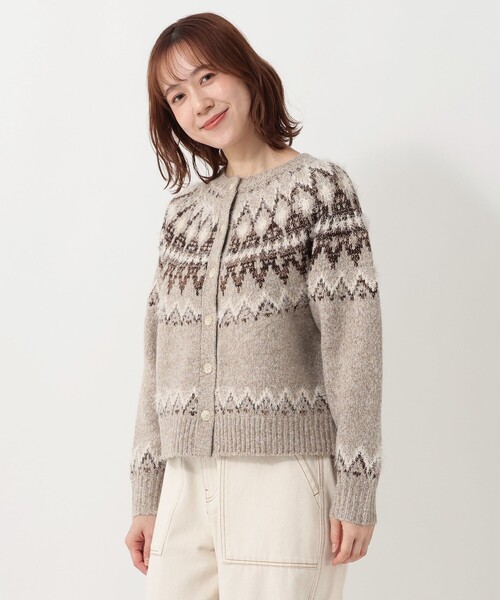 ノルディック調の編み柄がコーディネイトに映えるカーディガンです。毛足の長いフェザーヤーンを使用し、ふんわりと軽く、あたたかな風合いに仕上げました。少しワイドなパンツやスカートなど、さまざまなボトムスとバランスを取りやすいすっきりとした着丈で、メリハリのあるスタイリングを実現。ご自宅での手洗いが可能なため、毎日の着まわしにご愛用いただけます。*濃色製品は色落ちしますので他のものと分けて洗濯してください。洗濯前のつけ置きや濡れたままで長時間放置しないでください。*アイロンを掛ける際はあて布を使用してください。