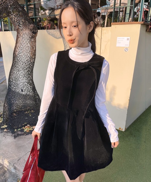 # pointo韓国ファッションo首元のリボンが可愛いらしいアクセントoクラシカルな雰囲気に幅の広いプリーツo高級感のあるベルベット素材o大人っぽく着られる上品な丈感o切り替え入りでスタイルアップ効果も期待# coloro BLACK# details透け感 : なし裏地:あり厚み : 厚い季節感 : 春、秋、冬伸縮性 : なし【UNE MANSION】韓国で生まれた“UNE MANSION"フランス語で「1つの」という意味がある「UNE」、ファッションに対しての様々な考えやアイテム達が住んでいる「1つのMANSION(マンション)」トレンドを発信し続けるファッションコミュニティーとなり、たくさんのアイテムとスタイルが集まったブランドです。気軽に韓国ファッションのトレンドを取り入れることができるアイテムを展開しお客様が"これ1枚でかわいい"と感じていただけるようにデザインやシルエットにこだわっています。※ご覧のモニター環境や撮影環境により実際の商品と多少色味が異なって見える場合がございます。※サイズの測定方法によって1~3cm程度の誤差が生じることがございます。※全ての商品の最初の洗濯はドライクリーニングをお勧めし、乾燥機のご使用はご遠慮ください。※洗濯不注意による商品の損傷の交換/払い戻しのご対応は難しくなっております。※濃いカラーの商品は素材の特性上、汗や水による色移りの可能性がございます。明るい色の下着やバッグ、その他のアイテムとの摩擦、色移りにご注意ください。もっとお買い物を楽しむために!商品のお気に入り登録お気に入りの商品やサイズ・カラーまで、お気に入りの登録をしていただきますと、そのアイテムのセールの通知、ラスト1点になった時の通知や、完売しても再入荷通知を受け取ることができます!ブランドのお気に入り登録新商品の発売や再入荷、タイムセールやクーポン発行のお知らせなど、最新の韓国ファッションを発信している韓国ブランドUNE MANSIONがお届けするお得な情報を受け取ることができます!