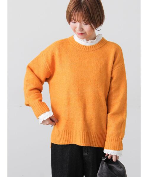 ウールを含むふんわりとした肌触りが心地よい着心地を実現するニット。ベーシックなクルーネックになっており、様々なスタイリングに取り入れることができます。前後で異なる裾の長さがすっきりとした印象をプラス。休日のお出かけやデイリーにも活躍してくれるアイテムです。※商品画像は、撮影環境やお客様のご利用のPC・スマートフォンのモニター環境などにより実物と色味に差異がある場合がございます。【その他採寸】 F 着丈:[前]53cm[後]56.5cm ★《お気に入り登録》でお得な情報をGET★① 商品ページ内のハートマークをクリック!② 以下通知が受け取れます!「再入荷」「ラスト1点」「特別セール」etc..\ブランド、ショップのお気に入りも是非!/