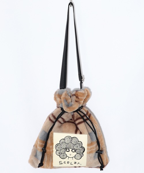 + ScoLar 商品 +秋冬といえばやっぱりチェック柄。そんな季節にぴったりな、ふわふわのフェイクファー素材のミニショルダーバッグが登場!表面には合皮素材にスカラーちゃんのお顔がプリントされたアップリケが施されており、アップリケありの面/なしの面、どちらを前にしても楽しめるリバーシブル感覚で使えるデザインになっています。ショルダーベルトは長さ調節が可能で、さらに巾着のようにキュッと絞って閉じられる仕様も魅力のひとつ♪内側にはミニポケットもついており、鍵やリップなどの小物を整理して持ち運ぶのにも便利です。お気に入りのコーデにふわふわの温もりと華やかさを添えてくれる、秋冬にぴったりのアイテムです。●model:ななせ 155㎝/61inch●model使用:37(オレンジ)※ ショルダー:長さ調節・取り外し可能※ ドローコード使用※ 合成皮革使用※ inポケットあり取り扱いのご注意:※この製品は摩擦や水濡れにより色落ちにすることがありますのでご注意ください。※この製品は生地独特な風合いを出すために、製品加工してあります。(製品は1点、1点多少表情が違います)※この商品は仕立て素材がデリケートな為、過度の外力がかかりますと破損する恐れがあります。※雨・水に濡れますと色落ち・シミなどで衣類を汚す事がありますのでご注意ください。※ベンジン・シンナーなどアルコール系溶剤のご使用は避けてください。※水・摩擦・薬品等により、シミができたり、色落ちすることがありますので、特に淡色の服を着用される場合はご注意ください。※辞書などの極めて重い物を詰め込んで使用するとバッグ本体に破損・型崩れする場合があります。重い物を入れたままバッグを振り回したりしないでください。