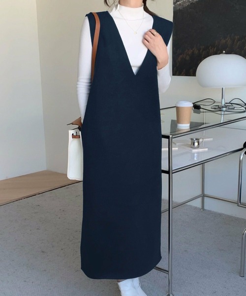 サイドスリット深Vジャンパースカートは、インナー次第で季節や印象を自在に変えられるアイテムです。 深いVネックが縦のラインを強調して、すっきり見えるのもポイント。 ⸻ ① 大人カジュアルスタイル •インナー:リブタートルニット(ベージュ・チャコール・オフホワイト) •シューズ:ショートブーツ or ローファー •バッグ:レザーショルダーやバケツバッグ •ポイント:すっきりしたシルエットに、ブーツで引き締めて大人っぽく。 ⸻ ② フェミニンスタイル •インナー:シアーブラウスやボウタイブラウス •シューズ:ヒールブーツ or パンプス •アクセ:パールピアス・細めのベルトでウエストマーク •ポイント:ブラウスの透け感やディテールで女性らしさをプラス。 ⸻ ③ ストリートミックス •インナー:ロゴスウェット or カジュアルTシャツ •シューズ:スニーカー or 厚底ブーツ •アウター:MA-1やデニムジャケット •ポイント:Vネック×スウェットのギャップでトレンド感を出す。 ⸻ ④ 冬のレイヤードスタイル •インナー:ハイネックニット •アウター:ショートダウン or フェイクファーコート •シューズ:ロングブーツ •ポイント:サイドスリットからロングブーツをのぞかせると、抜け感と脚長効果が◎。 【Information】 ◆《お気に入り登録》がオススメ◆ ・「商品のお気に入り登録」で再入荷通知や、ラストの通知、セール通知も受け取ることが出来ます。 ・「ブランドのお気に入り登録」で新商品や再入荷など、お得な情報を受け取ることが出来ます。 ※撮影時のライティング、ご覧になっているモニター・PC環境により、実際の商品と色味が異なって見える場合がございます。予めご了承をお願い致します。 大人ファッション 大人カジ お洒落 お仕事コーデ 低身長 20代コーデ 30代コーデ 40代コーデ 50代コーデ おすすめコーデ おちびコーデ 今日コーデ お洒落な人と繋がりたい オフィスコーデ お洒落さんと繋がりたい ママコーデ きれいめコーデ 春服 きれいめカジュアル 大人カジュアル ファッション通販 大人コーデ トレンド オトナカジュアル 新作 新着 再入荷 エレガント ベーシック カジュアル 可愛い おしゃれ オシャレ お洒落 個性 個性的 定番 ベーシック 大人かわいい 大人可愛い 上品 女性らしい デザイン スタンダード ナチュラル きれいめ キレイめ シンプル フェミニン レディース レディースファッション 大人 ママ ミセス 30代 40代 50代 60代 フリーサイズ フリー 小さめ 小さめサイズ小さい 小さいサイズ 低身長 痩せ ほっそり 小柄 細身 標準サイズ 大きめシルエット 大きい 大きめ ビッグシルエット ぽっちゃり F サイズ自由 秋 夏 冬服 春物 夏服 秋服 春物 ホワイト 白 白色 日常着 普段着 日常使い