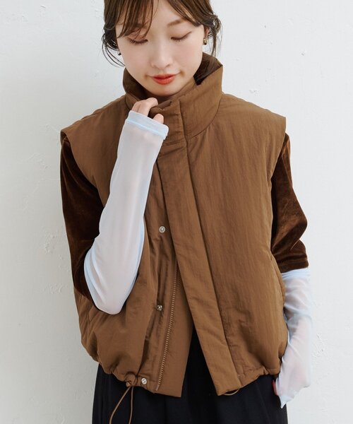 軽く羽織って、抜け感をつくる中綿ベスト ■デザイン 軽やかなのにしっかりと暖かい、中綿入りのナイロンベスト。 程よくボリュームのあるシルエットと、スタンドカラーがシーズンムードを高めてくれます。 フロントはスナップボタン×ジップ仕様で、防寒性も◎。 レイヤードしやすい丈感で、秋冬のスタイリングに抜け感をプラスしてくれるアイテムです。 ■生地感 マットな質感のナイロン素材で、軽くて柔らかい着心地。 中綿入りながらももたつかず、デイリーに使いやすいのが魅力。 ややハリのある表面感でカジュアルすぎず、上品な印象に。 ■スタイリング ロンTや薄手のニットの上にさらっと羽織るだけで、こなれたカジュアルスタイルに。 ブラウスやシャツと合わせれば、異素材のレイヤードが引き立ち、こだわり感のある着こなしに仕上がります。 ワンピースに重ねてあえて甘さを抑えるコーデもおすすめ。 ボリュームのあるボトムやスカートともバランスが取りやすく、秋から冬にかけて長く活躍してくれるアイテムです。 ▼おすすめスタイリングアイテム B ブークレニットパーカー B ベロアレイヤードライクトップス B ウエストリボンイージースラックス *********************** 洗濯方法:ご自宅では洗えませんのでクリーニングショップにご相談ください。 暖かさ:★★★☆☆ 生地の厚さ:普通 裏地:あり ポケット:あり 伸縮性:なし ボタン:あり *********************** 【B Kastane&オンラインショップ限定発売アイテム】 ファッションやカルチャーを起点とした感性で、ライフスタイルすべてを自分らしく楽しみたい方に向けたニュースタンダードを提案。 【お取り扱いの注意】 ※着用時、洗濯時は必ず取り扱い表示・タグをご確認の上、お取り扱いください。 ※サイズ採寸は各モールによって異なり、多少の誤差が生じる可能性がありますのでご了承ください。 ※撮影画像はサンプル品を使用しているため、実際の商品とカラー、仕様、加工、サイズが若干異なる場合がございます。 使用しているパソコンのモニター設定や、携帯電話のメーカー・機種により実際のカラーと異なって見える場合がございます。予めご了承ください。 ▼商品のお気に入り登録 ハートマークをクリックし、お好きなカラーを選んでお気に入りに登録 完売カラーの再入荷通知や、ラスト1点の通知、セールの通知も受け取ることができます。 ▼ブランドのお気に入り登録 新商品や再入荷等、いち早くブランドのお得な情報を受け取ることができます。 <返品・キャンセルについて> ・着用・洗濯後の返品・ご交換は致しかねます。 ・商品到着後、着用前に商品を確認して頂きますようお願い致します。