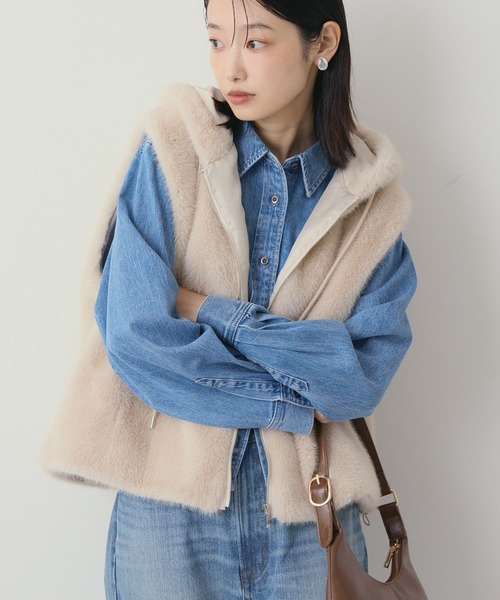 ふわふわな毛足の素材感がシーズンスタイルにぴったりなファーベスト。程よくボリュームのあるフードがカジュアルな雰囲気を演出する、デイリーユースに最適な1着です。裾のドロストコードを絞って、お好みのフォルムにアレンジできるのも嬉しいポイント。いつものスタイルに加えるだけで奥行きのある印象的な着こなしが完成します。透け感[なし]生地の厚さ[普通]光沢感[なし]伸縮性[なし]裏地[あり]ポケット[あり]※モデル着用画像は、光の当たり具合で色味が違って見える場合がございます。※お使いのモニター環境によって商品の色味が違って見える場合がございます。●AMERICAN HOLIC ● (アメリカンホリック)大人の女性の毎日を軽やかで豊かにするブランド。カジュアルなのにオシャレ、コーディネートも楽。ONにもOFFにも等身大で楽しむオトナの日常着をテーマに、スタイリッシュかつ自然体を楽しめるカジュアルスタイルを提案します。 ▼ 商品のお気に入り登録がおすすめです ▼商品ページ内のハートマークをクリック。完売時の再入荷や、最後の1点の通知、お得なお値下げの際の通知を受ける事ができます。【お知らせ】ページでも通知が確認できます。