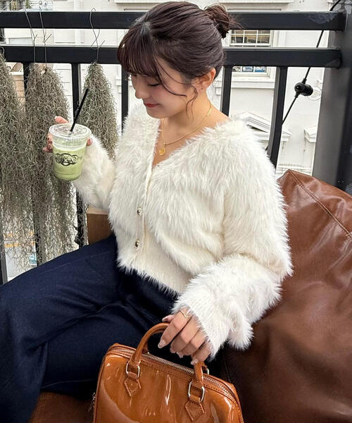 【人気インフルエンサースタッフはかな企画】【一枚で主役級低身長さんもひったりクロップド丈カーデ】 (fabric&design) ◆素材/ふわふわやわらかな手触りの良いロングシャギー素材 ◆デザイン/ふわふわ素材に丸いころんとした金ボタンを施したホリデームードあふれるデザイン。 クロップド丈なので、どんな骨格・どんな身長の方もスタイリングのバランスよく着ていただけます。 (スタイリング) ティアードスカートやデニム合わせ◎。 キャミワンピースとの相性も◎ 商品特性 ■透け感:なし ■生地の厚さ:普通 ■裏地:なし ■伸縮性:あり ■光沢:なし ■シルエット:スタンダード --------------------------------------------------- ◆商品のお気に入り登録◆ お気に入りアイテムの値下げ・再入荷・在庫1点などの通知を受け取ることができます。 ◆ブランドのお気に入り登録◆ 新商品や再入荷、セール、クーポン配布などお得な情報を受け取ることができます。 ---------------------------------------------------