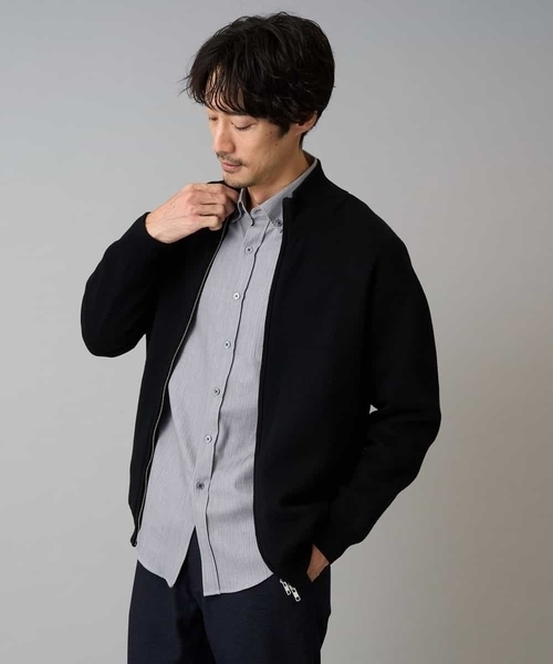 ◆柔らかな素材感で爽やかな好印象を与える大人のきれい見えスタンドカラーカーディガン◆ 【デザイン】 ニット素材特有の軽さと柔らかさが特長のジップアップカーディガン。 スタンドデザインに加えポケットをシームポケットにすることで見た目にもスッキリとした大人らしいミニマルな仕様にしています。 アウターとしてはもちろん、冬アウターのインナーにも着用できる手に取りやすい着やすさがポイントです。 カジュアルからビジネスシーンまで使える汎用性の高い大人のカーディガンです。 春先まで気温に応じて着用できるため1枚あると非常に重宝するアイテムです 【素材】 クリーンで起毛感の少ないきれいめ見えするコットン糸とポリエステル糸を使用したダブルフェイス編みニット。 表側をコットンの天竺編み、裏側をポリエステルのハニカム編みにすることで、膨らみ感がありつつ、非常に軽い仕上がりにしています。 毛素材のようなチクチク感が少ないのでリラックスして着用いただけます。 ご自宅で気軽に洗濯機洗いができるためデイリーユースに着用できるのも嬉しいポイントです。 【スタイリング】 きれいめならインナーにシャツ合わせ、カジュアルならカットソー合わせなどテイストによって使い分けが可能です。 冬にはウールコートのインにも着用できる汎用性の高いアイテム。 ボトムはきれい目スタイルであればスラックス合わせ、カジュアルスタイルであればゆとりのあるパンツとあわせるとバランスが良いコーディネートの完成です。 ---------------- 着用シーズン 春:〇 夏:× 秋:◎ 冬:◎ ---------------- 透け感:なし 裏地:なし 伸縮性:あり 光沢感:なし 生地の厚さ:普通 ---------------- ≪お気に入り登録機能の使い方≫ ■商品のお気に入り登録(ハートマークをクリック) 再入荷通知や値下げ等、お得なご案内を受けることができます。 ---------------- ※商品画像は、光の当たり具合やパソコンなどの閲覧環境により実際の色味と異なって見える場合がございます。 商品の色味の目安は商品単体の画像をご参照ください。