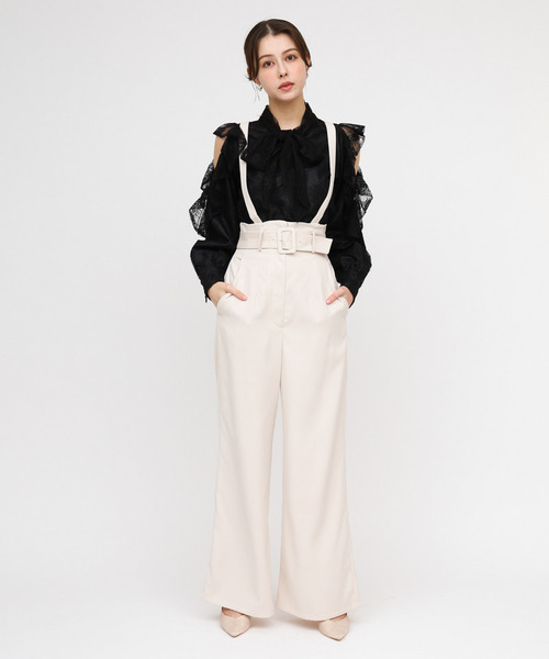 ウエスト位置を高く設定したハイウエストデザインが、脚長効果を叶えるワイドパンツ。共地のサスペンダーは取り外し可能で、付けてクラシカルに、外してシンプルにとスタイルの変化を楽しめます。ゆったりとしたワイドシルエットは、動きやすくリラックス感もありつつ、上品な落ち感で大人らしい着こなしを実現。トップスとのバランス次第で、カジュアルからきれいめまで幅広く対応する1枚です。**********************透け感:オフホワイトややあり裏地:あり伸縮性:なし光沢感:なし生地の厚さ:普通ファスナー:あり付属品:なし**********************※商品画像はサンプルのため、色味やサイズ等の仕様に変更がある場合がございますので、予めご了承下さい。※取り扱いについては、商品についている品質表示でご確認ください。※こちらの商品は、ROYAL PARTYでの取り扱いになります。直接店舗へお問い合わせの際はROYAL PARTY店舗へお願い致します。※照明の関係により、実際よりも色味が違って見える場合があります。またパソコン・スマートフォンなどの環境により、若干製品と画像のカラーが異なる場合もございます。予めご了承ください。※サイト上のカラー名と、お届け商品に記載されているカラー名が異なる場合がございます。【商品のお気に入り登録】お気に入りアイテムの値下げ・再入荷・在庫1点などの通知を受け取ることができます。⇒カートの右のハートをクリック 【ブランドのお気に入り登録】新商品や再入荷、セール、クーポン配布などお得な情報を受け取ることができます。⇒上部ブランド名をクリック※お気に入りをするとZOZOのお気に入りアイテムページで簡単にcheckできて再検索不要です※