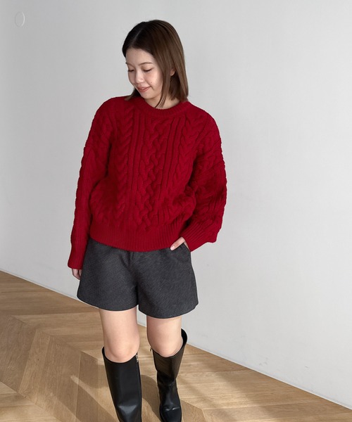 デザイン暖かみのあるケーブル編みがシーズンライクな1枚。ゆったりしたサイジングで抜け感をプラスしてくれます。素材ボリューム感のある生地ながら軽い着心地が魅力。コーディネート1枚で着るのはもちろん、ロンTを合わせたレイヤードスタイルも◎デニムやワイドパンツと合わせたカジュアルスタイルや、綺麗めのボトムとも合わせていただけます。El mar(エルマール)El mar はスペイン語で『海』海に向かうときはだれでもワクワクする。洋服を選ぶとき、袖を通すとき、同じように心が踊るアイテムを提案したい。そんな『ワクワク』な気持ちを込めて El mar はデビューしました。-------------------------------------生地の厚さ:厚い〇〇●〇〇薄い伸縮性:あり透け感:なし裏地:なし光沢:なし-------------------------------------【ニットのお手入れ方法について】ニットの風合いを損なわず、きれいに保ち続けるためには日頃のケアが必要です。1日着用して湿気がこもったニットは、風通し良い場所に干し湿気を取り2-3日お休みさせてください。型崩れさせないようにするために畳んで保管するのがおすすめです。ハンガーで保管の場合は、肩線が崩れないように厚みのあるハンガーや木製ハンガーをご使用ください。【毛玉のケア方法】毛玉取り器を使い、優しく回しながら取り除いてください。毛玉が大きいものや毛足の長いものは、毛玉をつまみハサミでカットするのがおすすめです。取扱い・蛍光増白剤が入っていない洗剤をご使用ください。・クリーニングネットをご使用ください。・濃い色と白 ・淡色物は分けて洗ってください。・洗濯で多少縮むことがあります。洗濯後はすばやく形を整えて干してください。タンブラー乾燥はお避けください。・アイロンの際は当て布をご使用ください。・着用時の汗や摩擦により、他の衣類や鞄などに色移りすることがありますので、淡色系との着合わせはご注意ください。・摩擦や引っかけにご留意ください。※取り扱い及びお手入れ方法については、商品についている取扱表示、洗濯表示にてご確認下さい。※照明の関係により、実際よりも色味が違って見える場合があります。またパソコン・スマートフォンなどの環境により、若干製品と画像のカラーが異なる場合もございます。※商品の色味は、商品アップ画像をご参照ください。