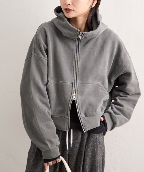 JOURNAL STANDARDフードで首回りに立体感を出したフーディースウェット。深いフードを閉じるとバラクラバの様に首元に溜まり、ハイネックのようなシルエットになります。着丈は短めのすっきりコンパクトな仕様です。Wジップなので気分に合わせて雰囲気を変えられます。**********************透け感:なし裏地:なし伸縮性:あり光沢感:なし生地の厚さ:普通**********************【スタッフ着用コメント】《スタッフO》年齢:30代前半/身長:162cm/体型:普通/普段サイズ:M/着用サイズ:フリーサイズ感:やや着丈が短めのコンパクトなシルエット素材感:柔らかな素材感です。着心地:シルエットがポイントになり羽織るだけで決まる一枚。※あくまでも個人の感想です**********************※取り扱いについては、商品についている品質表示でご確認ください。※照明の関係により、実際よりも色味が違って見える場合があります。またパソコン・スマートフォンなどの環境により、若干製品と画像のカラーが異なる場合もございます。※商品の色味は、商品アップ画像をご参照ください。本体:手洗い可能