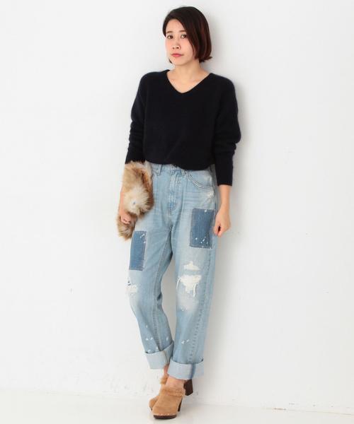 デニムリメイクパンツ☆パッチワークやダメージを加えて古着風にリメイクしたデニムパンツ!程よいシワとウォッシュ加工によって、リメイクデニムならではのヴィンテージ感を楽しめる一着です。ゆとりのあるシルエットや履き心地の良さなど、細部までこだわりが詰まっています。ダメージ部分の裏側には布を当てているので、肌が透けず秋冬にも安心して穿いていただます。フェミニンなブラウスや、ニットなどに合わせたミックススタイルもおススメです◎★ATTENTION:ダメージ感や加工感が1点1点若干異なります。商品特性となりますので、予めご了承ください。★ATTENTION:INDIGO(藍)染め製品ですので、他の衣服等に付着する事があります。また洗濯により徐々に染料が色あせいたしますので取り扱いには品質表示を確認の上ご注意下さい。※着用、お取り扱いの際は商品についておりますアテンションタグ、洗濯ネームを必ずご確認ください。店舗にお問い合わせの際は、全国のAnother Edition店舗まで下記の品名/品番をお申し付け下さい。品名:AEBC DNM リメイク PT品番:56141992032