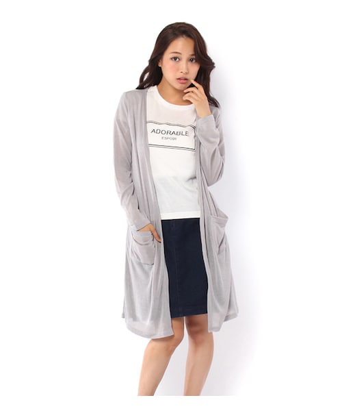 薄手の素材で作ったロングカーディガンと、シンプルで胸元のロゴが印象的なTシャツのセットアップです。旬なロングカーディガンも、インナーとセットならコーディネートで悩みません。それぞれが別々にも使えるので着回しの幅がぐんと広がる嬉しいアイテムです。