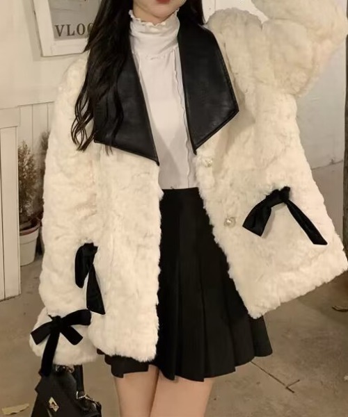 ◆DETAIL◇ ふわふわのフェイクファーと、PUレザーリボンの切り替えデザインが目を惹くバイカラーコート。 ガーリーさの中にほんのり辛さをプラスした、甘辛ミックスな1枚です。やわらかく軽い素材感で着心地も抜群。 羽織るだけでシーズンムードを高めてくれる主役級アウターです。 ◆COORDINATE◇ ①フェミニン…タイトスカートやワイドパンツに合わせて、甘さを抑えた上品スタイルに。バイカラーがコーデを引き締めてくれます。 ②ガーリー…フレアスカートやミニワンピースと合わせて、ふんわり可愛い冬のお出かけコーデに。ブーツでまとめると統一感◎。 ③甘めカジュアル…デニムやショートパンツに合わせて、フェイクファーを主役にしたカジュアルミックスコーデ。リボンデザインでラフすぎず、ほどよくガーリーに。 【色展開】 ・ホワイト ◆着用レビュー◇ 【スタッフA:身長155cm 骨格ウェーブ M着用】 軽いのにしっかり暖かい!リボンがアクセントになって、羽織るだけで華やかに見えます。 丈も短すぎずバランスが取りやすいです。 【スタッフB:身長162cm 骨格ナチュラル L着用】 バイカラーがすごく可愛いです!甘すぎないのでデニムにも合うのが◎。 ゆったりめで中にニットを着てももたつかず、冬でも快適です。 ◆POINT◇ ・フェイクファー×PUリボンの異素材切り替えデザイン ・甘すぎないバイカラーデザインで大人可愛い ・軽くて暖かいフェイクファー素材 ・デートにもデイリーにも使える万能アウター ・羽織るだけで華やか見え ◆キーワード◇ ・フェイクファーコート ・バイカラーアウター ・リボンデザイン ・異素材切り替え ・甘辛ミックス ・大人ガーリー ・高見えコート ・冬アウター ・フェミニン・ガーリー・甘め・カジュアル・秋冬コーデ ・春服 ・秋服 ・冬服 ※生産の特性上、商品画像との色差が多少出る場合がありますのでご了承ください ※着用身長によって画像イメージと異なる場合があります。 ※撮影環境により、実際のカラー、形状、デザイン等多少異なる場合がございます。 《 お知らせ 》 ▼商品のお気に入り登録 お気に入りアイテムの値下げ・再入荷・在庫1点などの通知を受け取ることができます。 ▼ブランドのお気に入り登録 新商品や再入荷、セール、クーポン配布などお得な情報を受け取ることができます。 是非、お気に入り登録してみてください! ※他のキャンペーンにより、期間中に価格が変動する場合があります。 ※セールは予告なく終了させていただく場合もあります。 ※ご注文いただいた予約商品のお届け時期の確認は、注文履歴ページより行えます。
