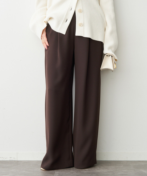 EVERYDAY I LIKE. の人気アイテム、イージーワイドパンツが待望の再入荷!リラクシーで綺麗見えが叶う素材と楽に履けるウエストゴムのイージーな仕様のシルエットが美しい1タック型のワイドパンツ。ゴム仕様のウエストはフロント部分がベルトになっているので、トップスをインにした際も綺麗に見えるのも嬉しいポイント。トップスを選ばず幅広いアイテムに合わせやすく、さらにシーズンレスで穿けるので持っていて損はないおすすめの1本。*********************透け感:なし裏地:なし伸縮性:あり光沢感:ややあり生地の厚さ:普通*********************【スタッフ着用コメント】《STAFF.S》20代後半/身長:162cm/体型:普通/普段サイズ:S/着用サイズ:34サイズ感:ヒールを履いてちょうどいい丈感。ウエストはゴムで楽に穿けます。素材感:とろみ感があり綺麗に流れ、薄すぎずにシーズンレスで着用できます。着心地:全体にゆとりがありリラクシー。ウエストのゴムも中でくるくるしない作りでウエストゴムパンツで気になりがちな点もないのも嬉しい。*********************※同シリーズのお色違いはこちらでご用意しております。商品番号:25030500822030 イージー ワイド パンツ2(ベージュ)※同一商品:25030500808030(若干の仕様変更がある場合がございます。)※取り扱いについては、商品についている洗濯表示にてご確認下さい。※照明の関係により、実際よりも色味が違って見える場合がありますまたパソコン・スマートフォンなどの環境により、若干製品と画像のカラーが異なる場合もございます。※商品の色味は、商品アップ画像をご参照ください。※こちらの商品はお一人様1カラー・1サイズにつき1点までの購入とさせていただきます。本体:洗濯機洗い(弱)