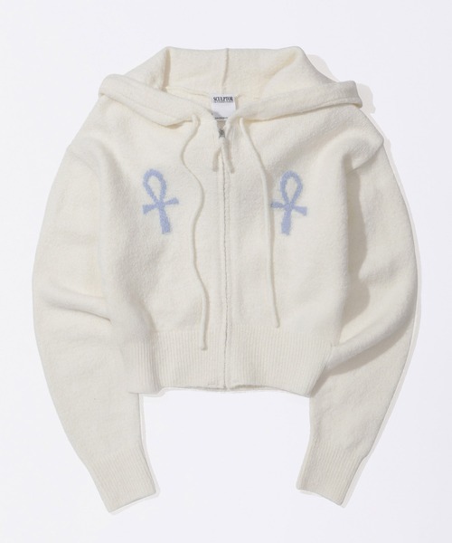 アンクデザインが可愛いジップフーディ。 配色がSCULPTORらしいアイテムです。 「Ankh Boucle Knit Pants」と併せてセットアップでの着用もおすすめです。 ----------------------------------------------- 【SCULPTOR】 SCULPTOR(スカルプター)は、ブランド名の意味する「彫刻家」のように、 パターンやシルエット等、細かいディテールまで繊細にデザインして丁寧に作品(洋服)を仕上げるというコンセプトにより誕生したファッションブランドです。 レトロカルチャーを基盤としつつ、現代的な感性と融合させた独自の世界観が確立されています。 Instagram : @sculptor_jp tiktok : @crewsculptor_jp ---------------------------------------------- [NOTICE] ・アテンションタグや洗濯表示を必ずご確認の上、ご使用下さい。 ・素材の特性上、他の物との摩擦によりピリング(毛玉)が生じることが有ります。 ・プリント部分は永久的なものではなく、長期間の使用や摩擦により、徐々に剥がれや欠損が生じます。 ・ご覧のモニター環境や撮影環境により、実物の商品と多少色味が異なって見える場合がございます。 また表示のサイズ感と実物は若干異なる場合もございますので、予めご了承ください。